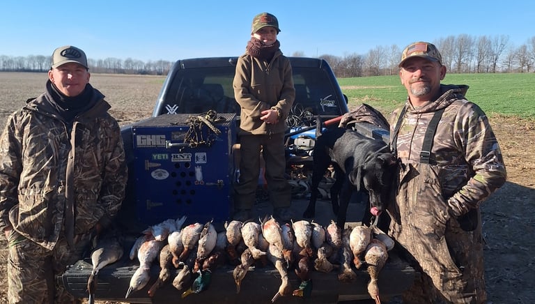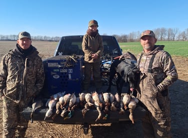 At Mud Creek Outdoors, we offer guided duck hunts that are not only thrilling but also educational. Our expert guides will take you to the "X" while teaching you about the local ecosystem and the different duck species you'll encounter. Whether you're a beginner or an experienced hunter, we have the perfect hunting trip for you. We have all the decoys, blinds, and ducks you will need!